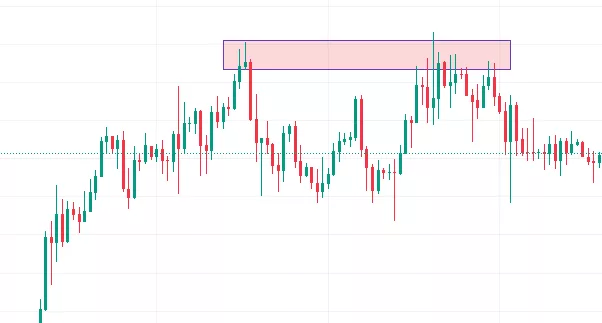 3. Tracez une zone horizontale à ces niveaux. Ils sont généralement repérables par des bougies constituées de longues mèches haussières ou baissières.